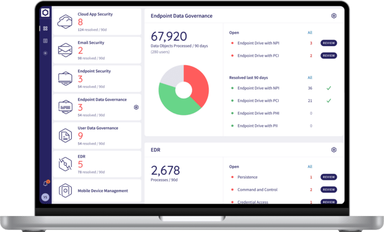 Coro’s Endpoint Data Governance module protects sensitive and critical data on endpoint devices. It monitors how data on these devices is stored, detecting and preventing unauthorized use, accidental loss, risky data sharing, or violations of data protection policies. Endpoint Data Governance comes pre-configured with baseline security policies and ensures endpoint devices comply with data protection policies from day one.